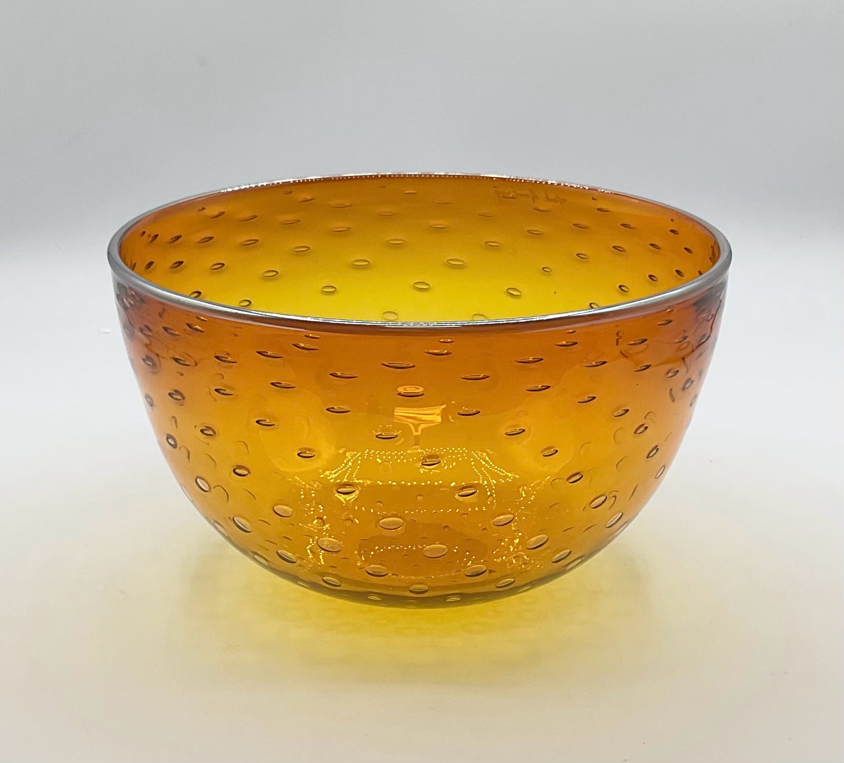 Fruit Bowl Centerpiece Mark Armstrong art glass amber with bubble detailing