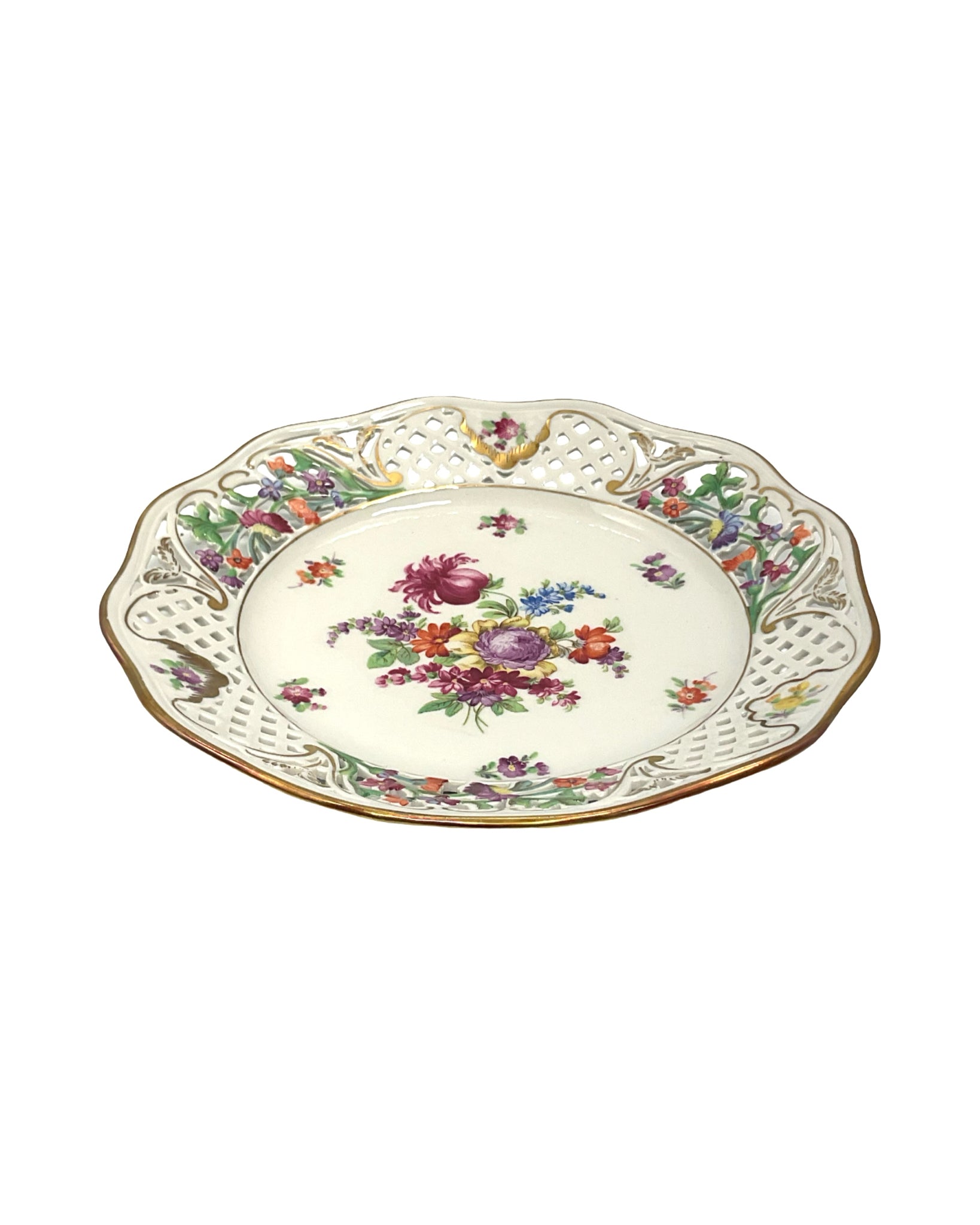 Vintage Plate Schumann Bavaria white porcelain pearced with floral & gold detailing