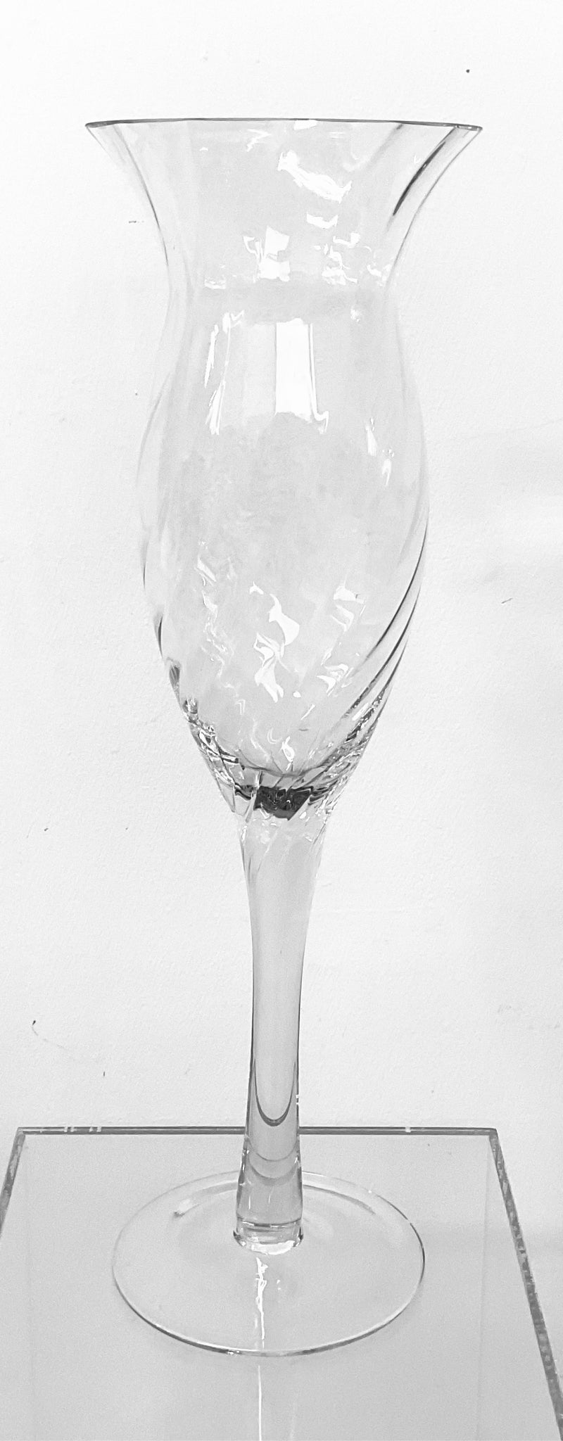 Vase glass pedestal base fluted swirl top