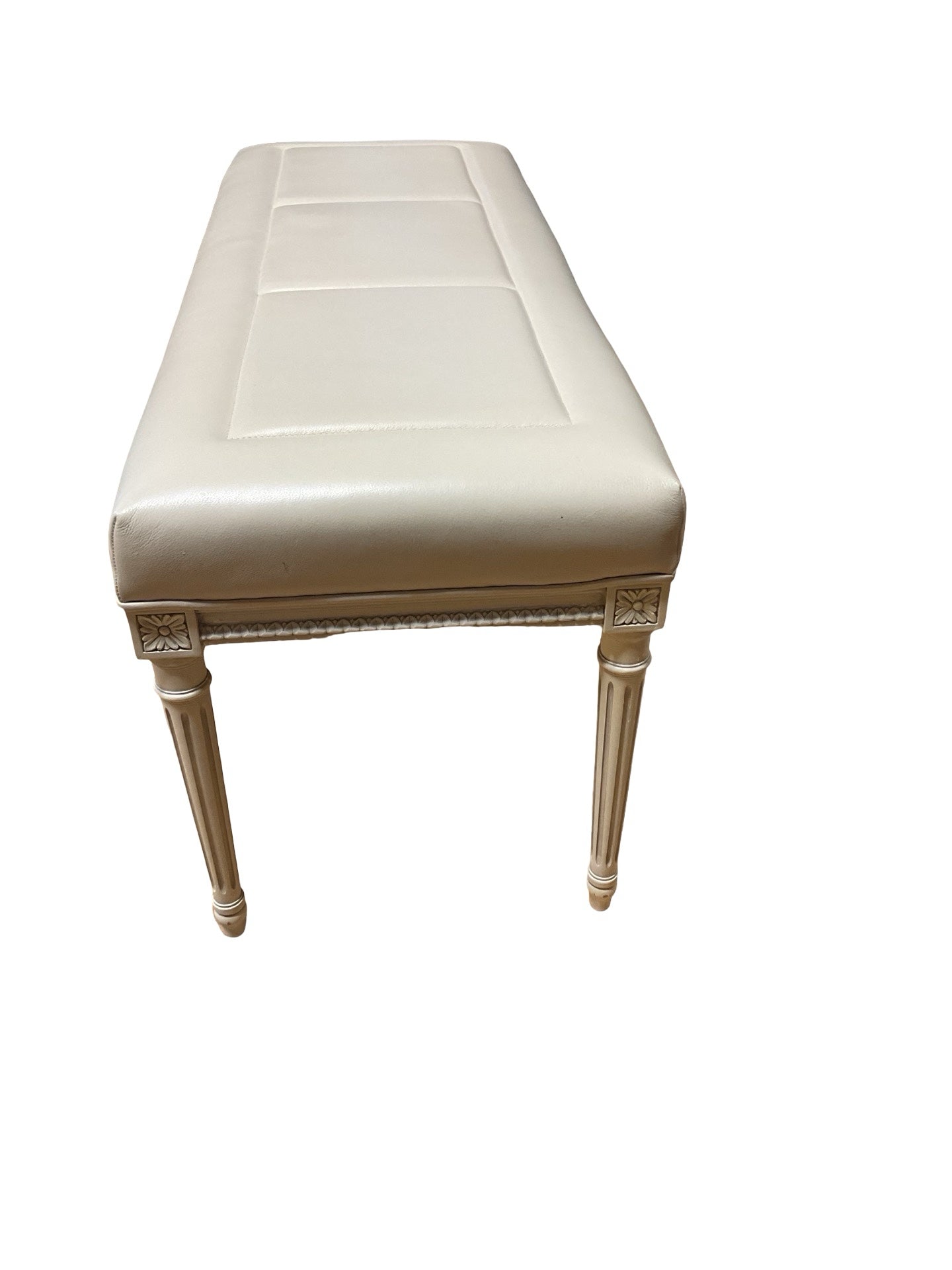 Bench cream upholstered seat with white wooden frame 43"W x 17"D x 20"H