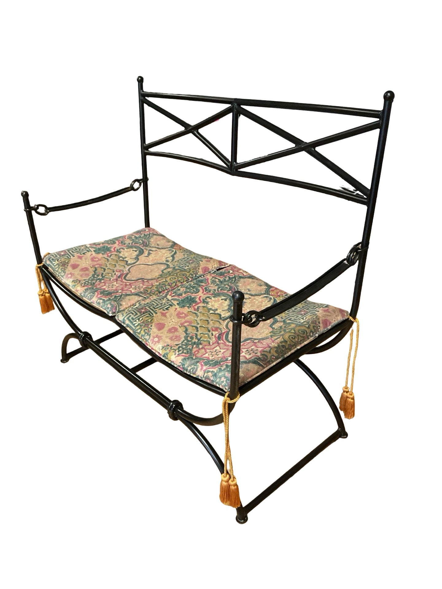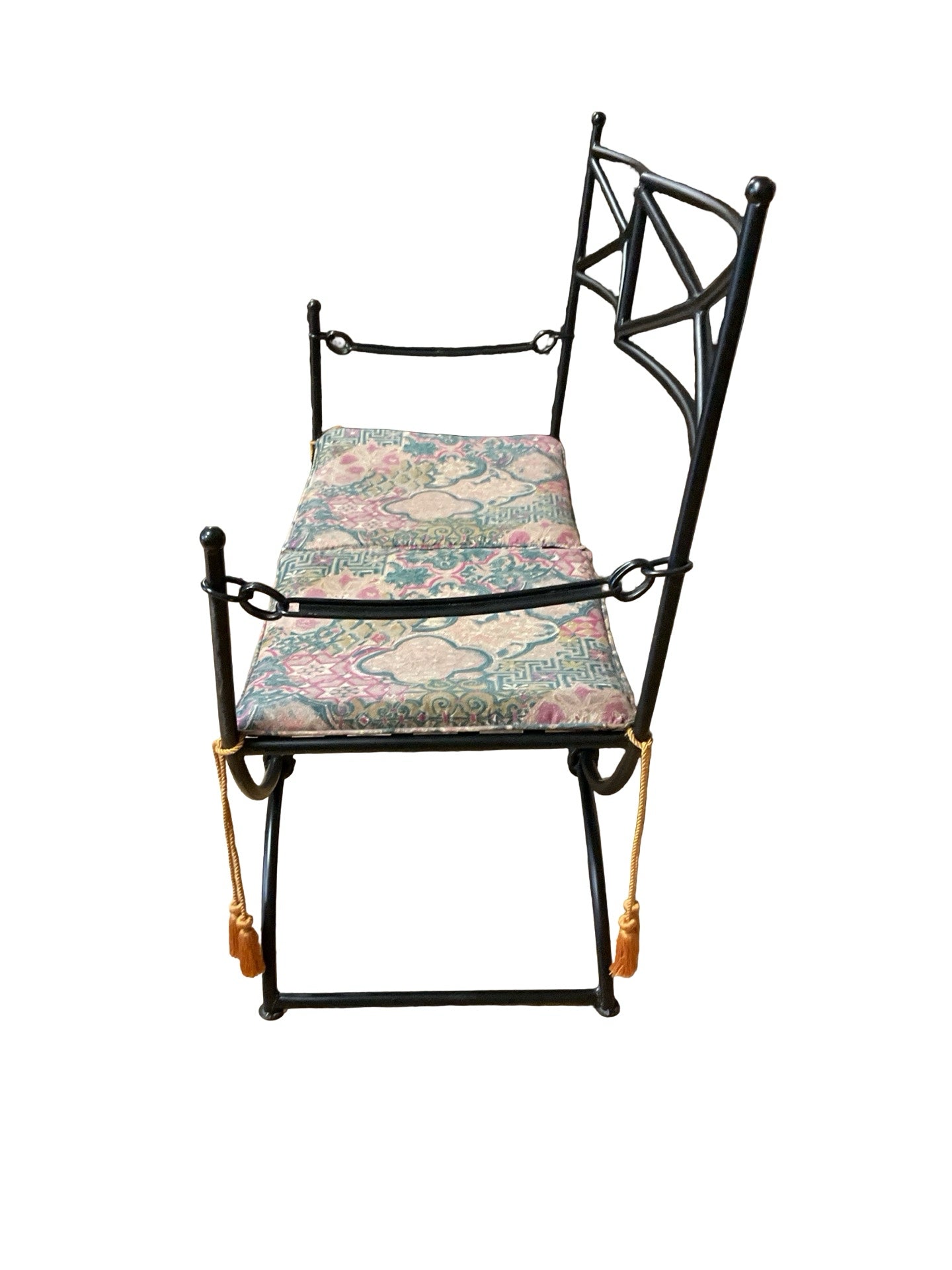Bench black metal frame with multi coloured cushion 41"W x 20.5"D x 39"H