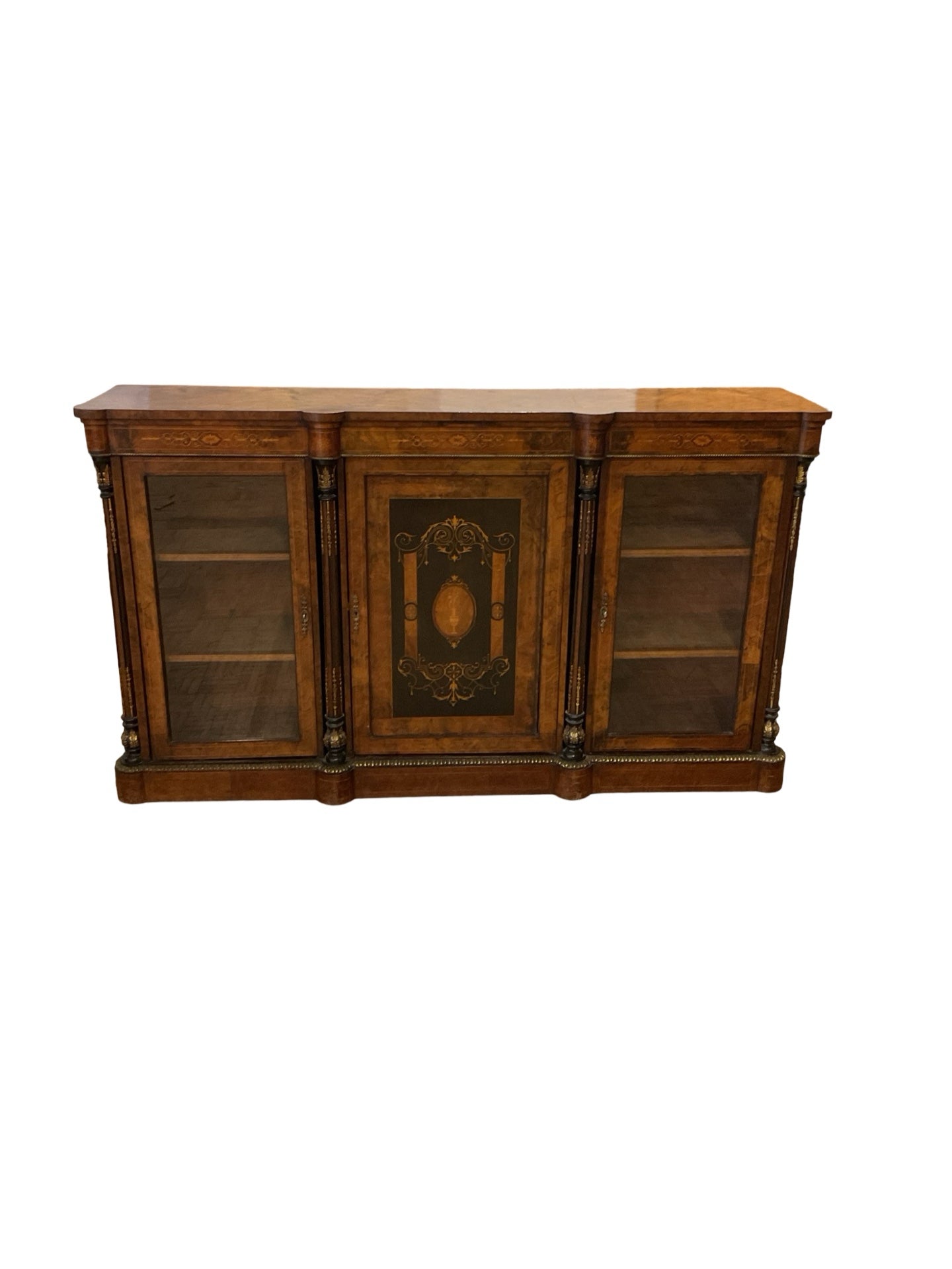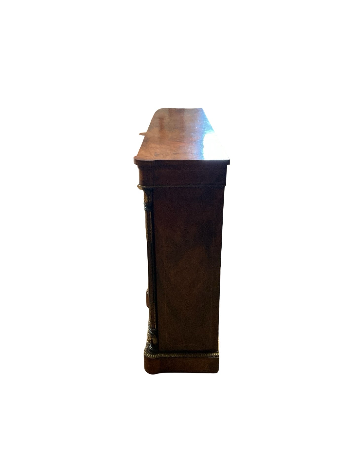 Vintage Buffet wooden 2 glass doors 1 wooden drawer gold gilt detailing with 2 keys 70"W x 15.5"D x 40.5"H
