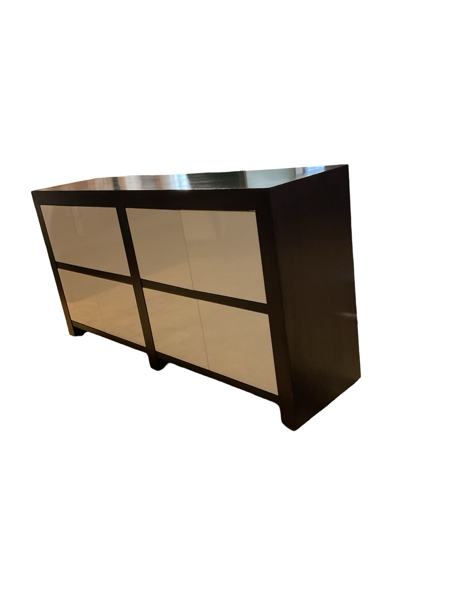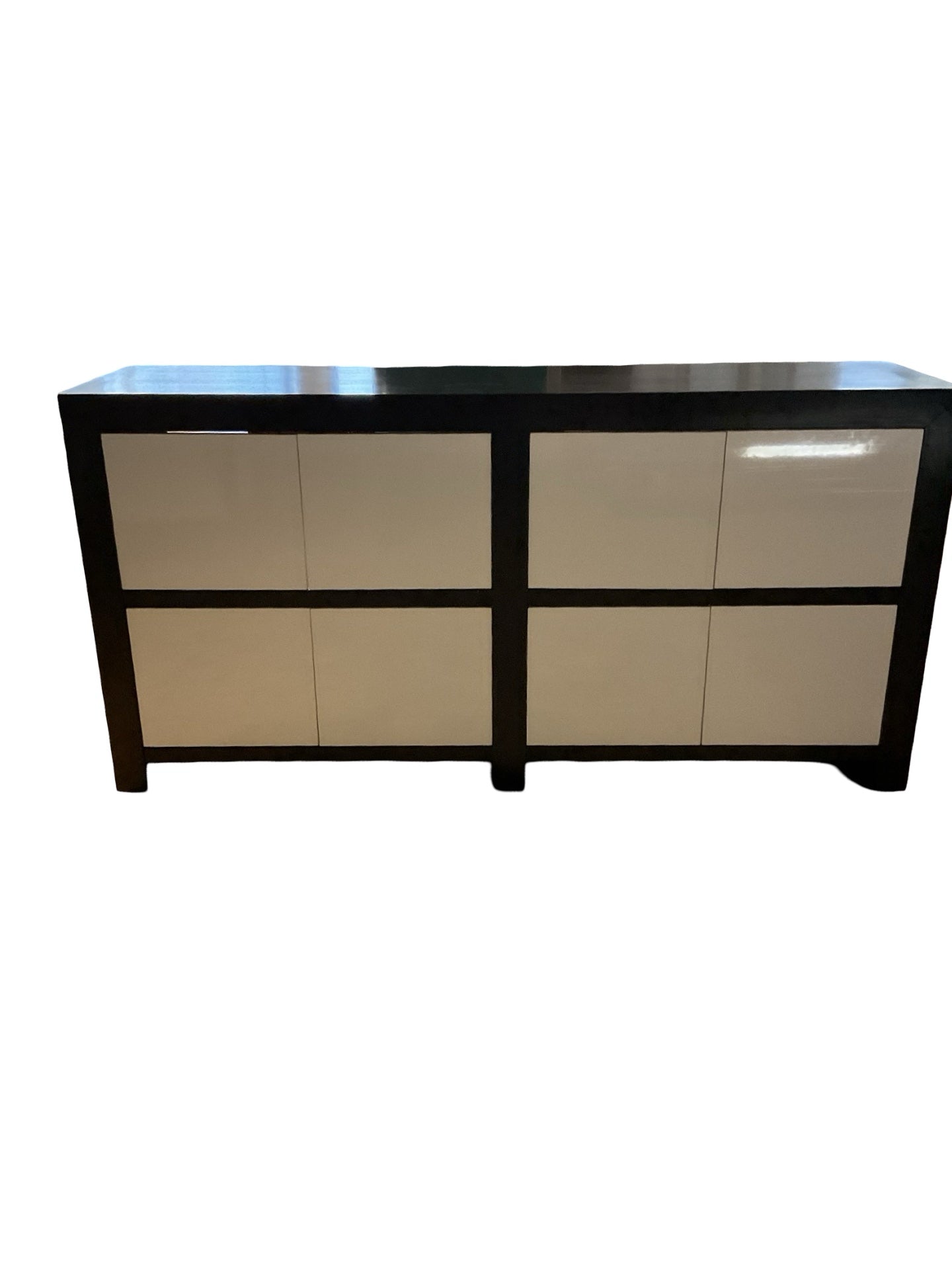 Buffet wooden brown with 8 white doors 72"W x 18"D x 36.5"H
