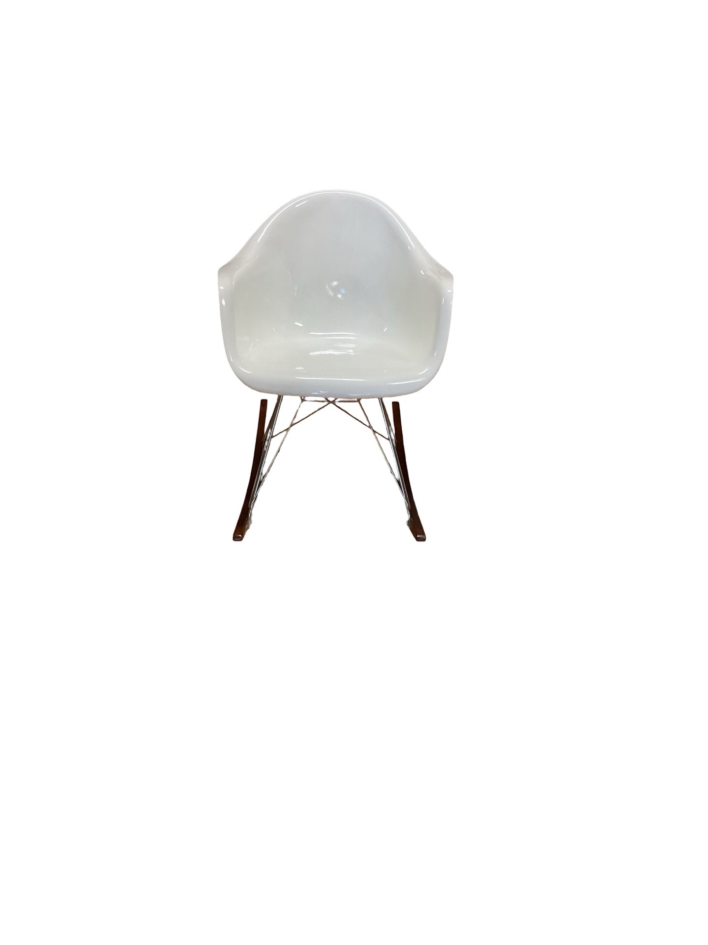 Rocking Chair white fiberglass seat steel base with wooden rungs 24"W x 32"D x 31"H