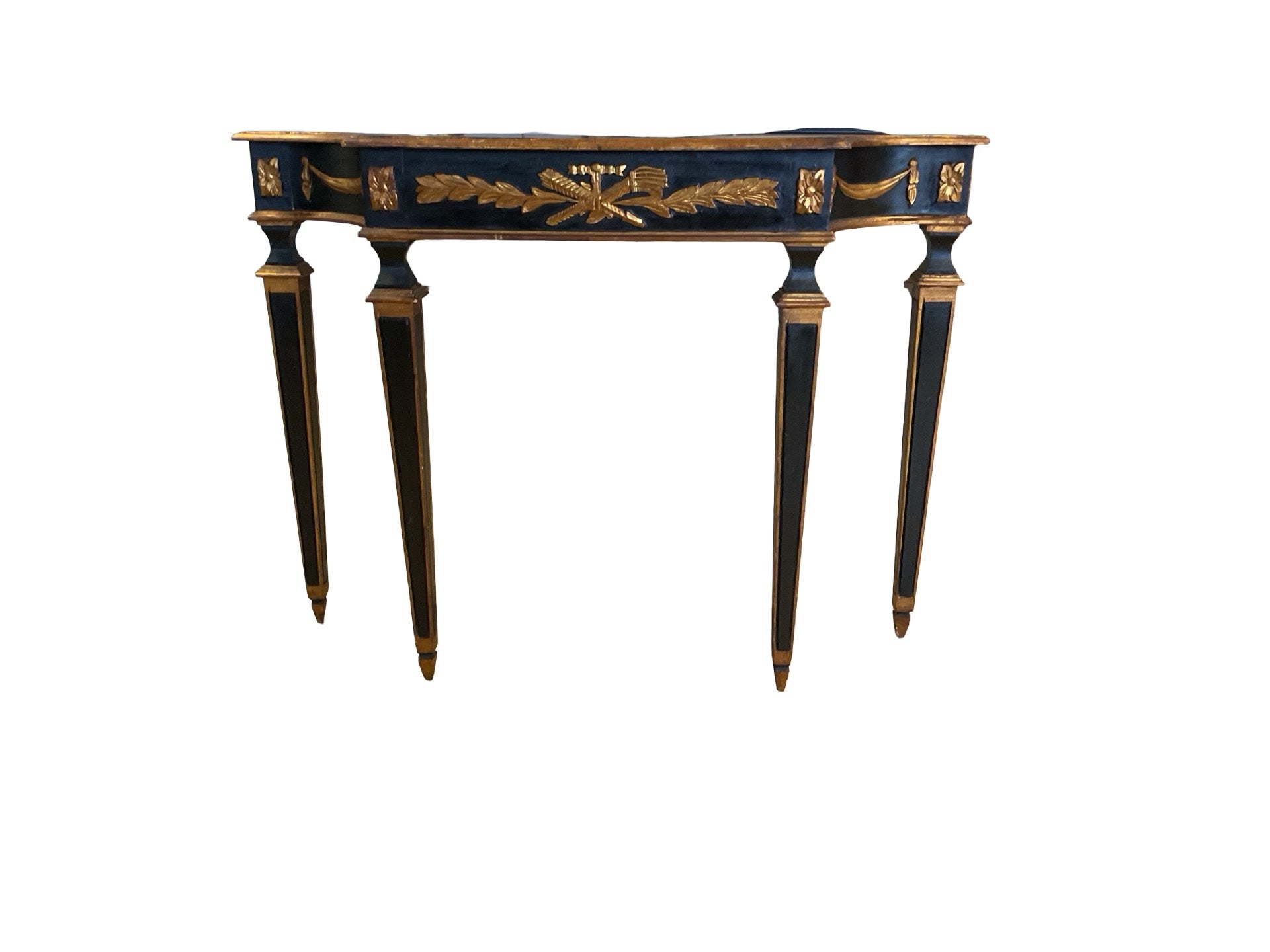 Console wooden black with gold gilt detailing 44"W x 11"D x 33"H