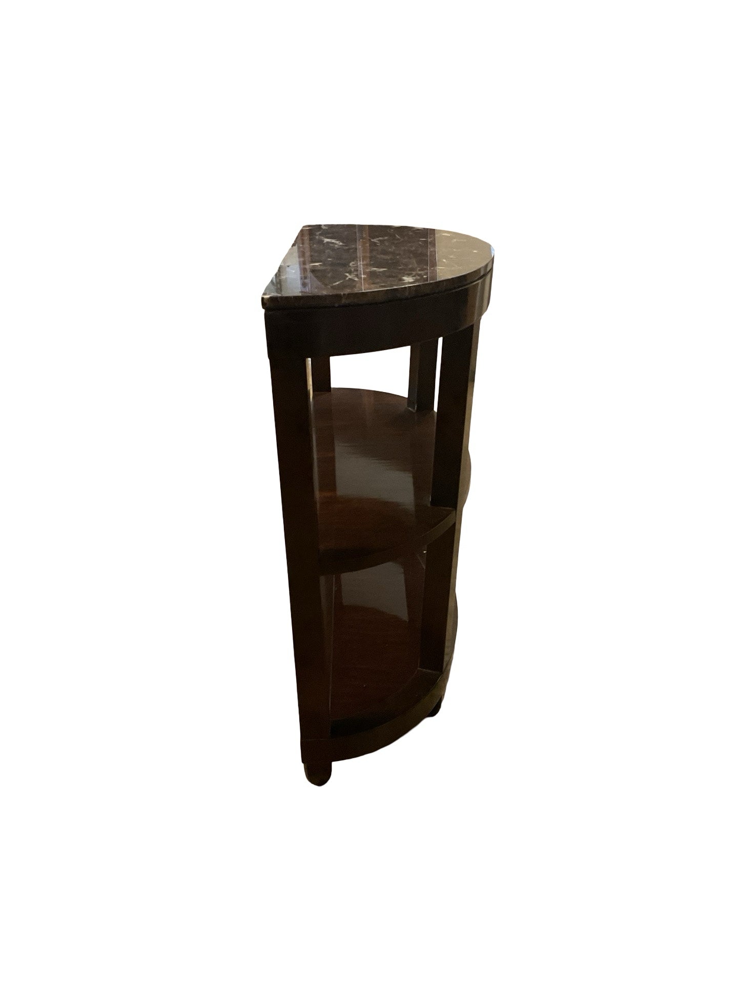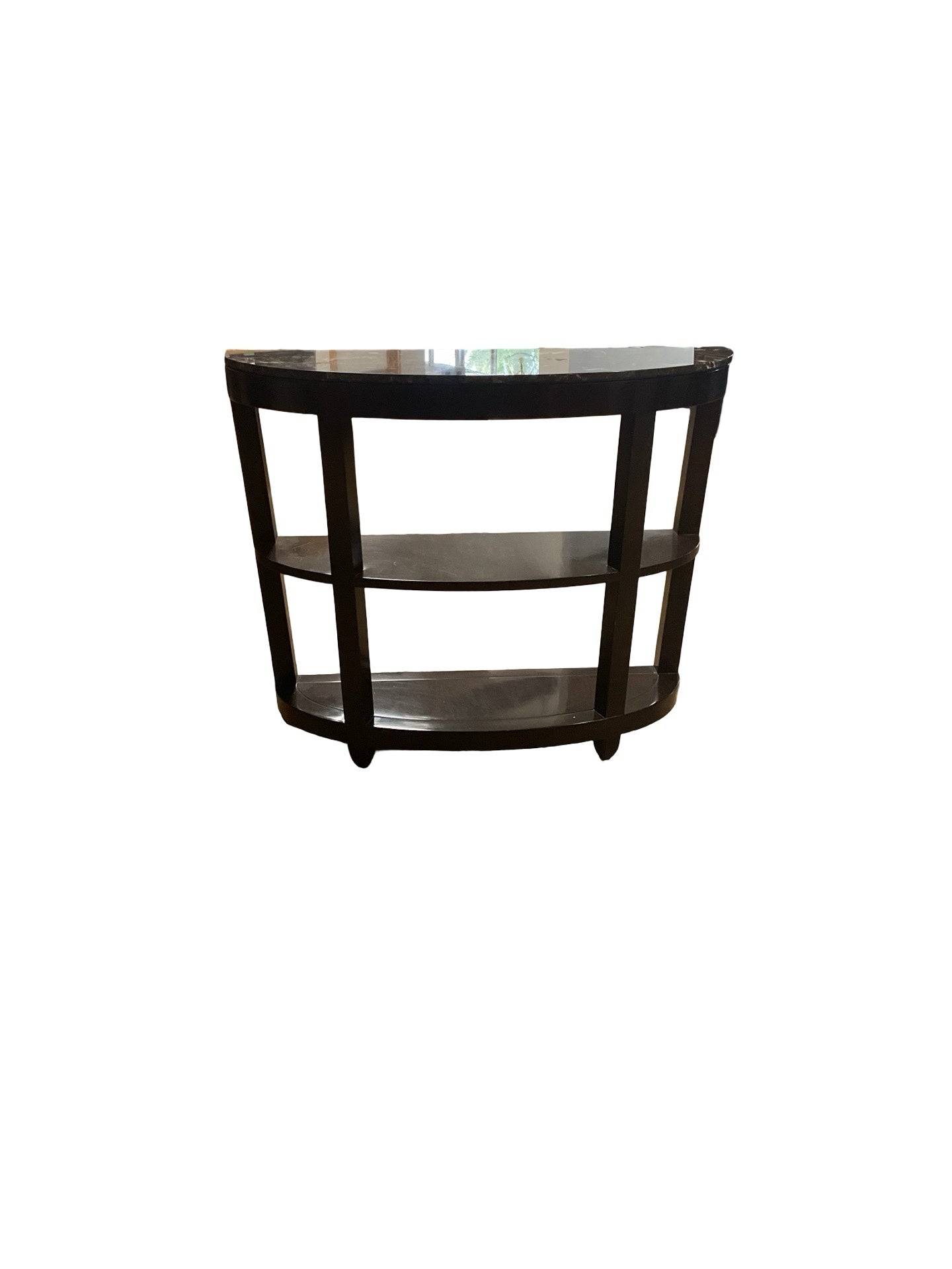 Demilune Console wood 3 tier with brown marble top 48"W x 17"D x 39.5"H