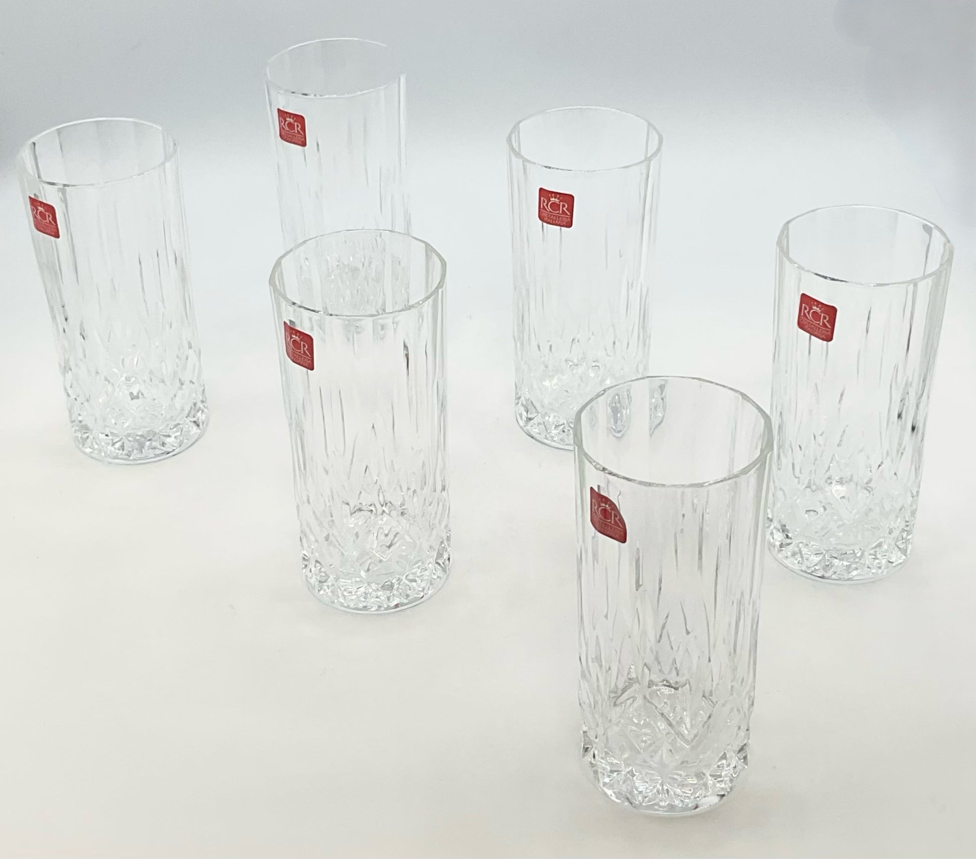 Set of 6 Highball Glasses RCR crystal etched