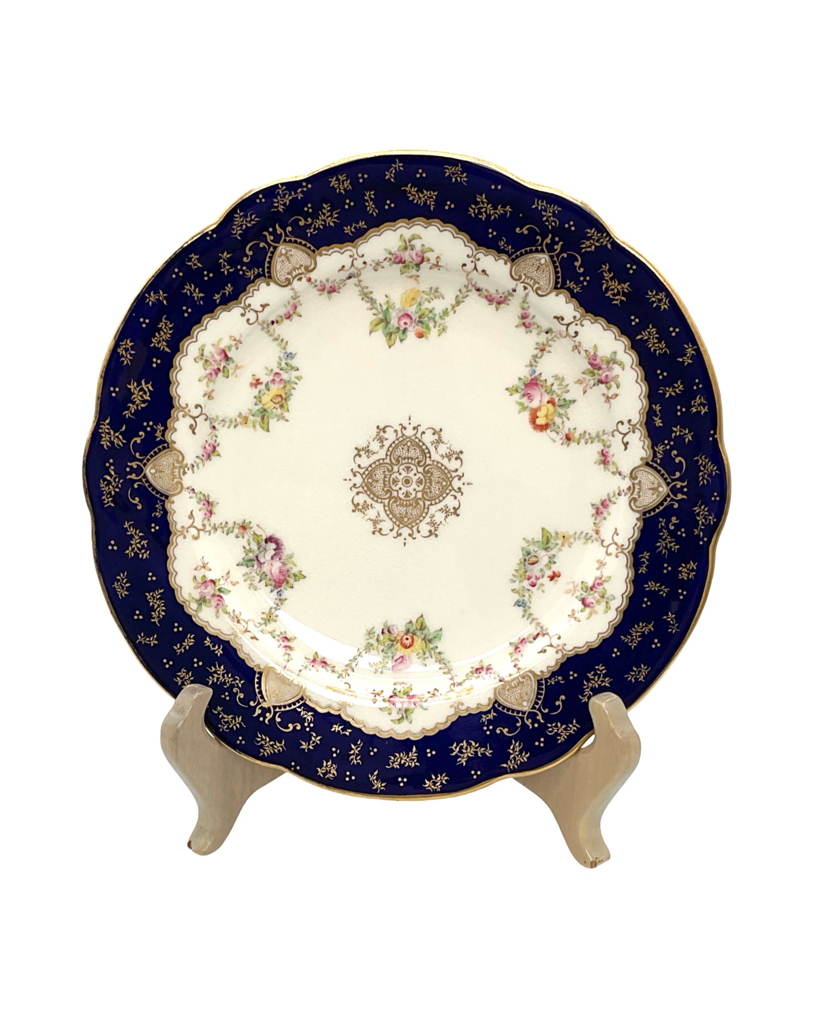 9 Piece Set of Serving Dishes Coalport cobalt blue white & floral with gold detailing