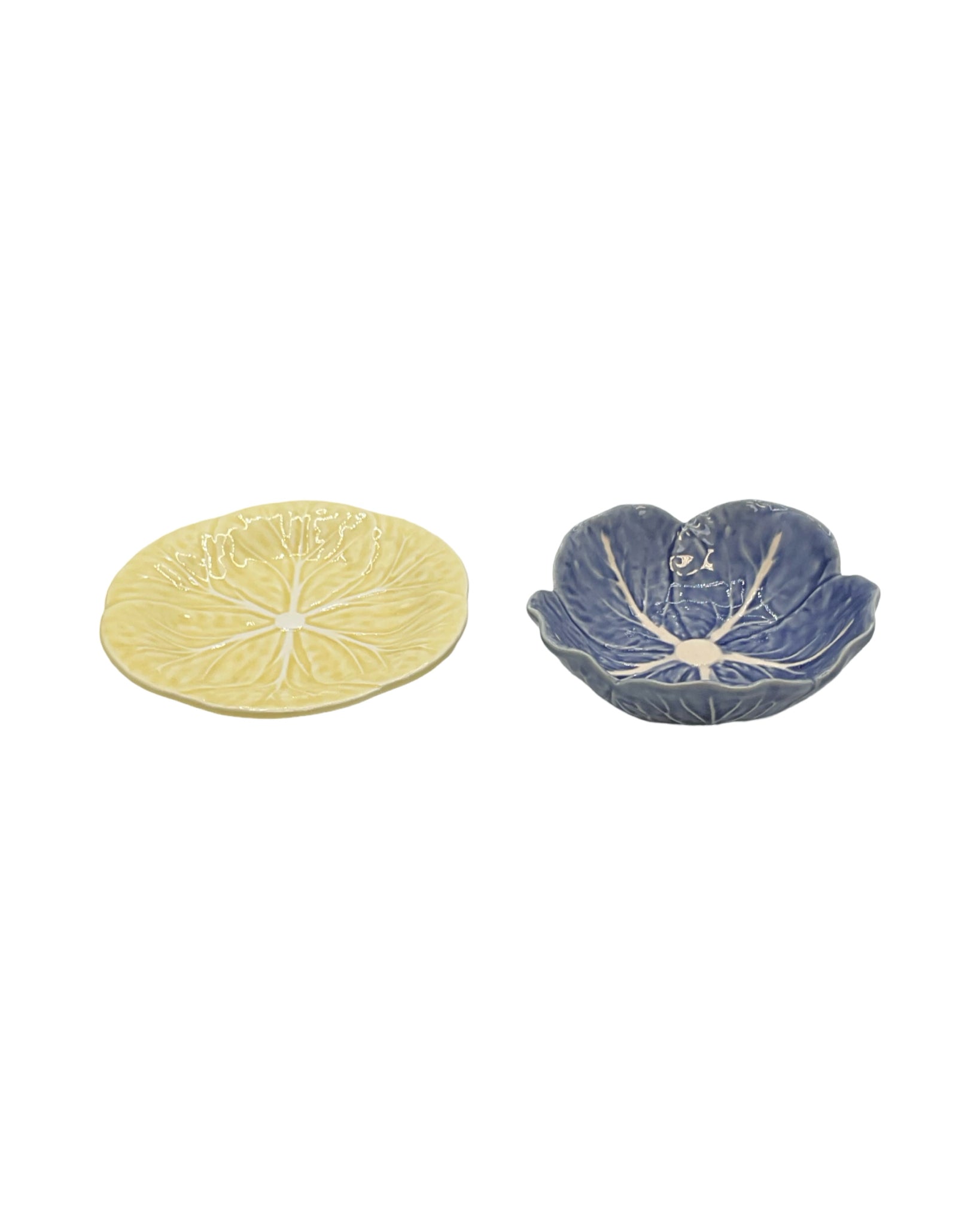 Set of 12 Sauce Dipping Dishes Bordallo Pinheiro Portugal Cabbage Leaf 10 small yellow plates 2 small blue bowls