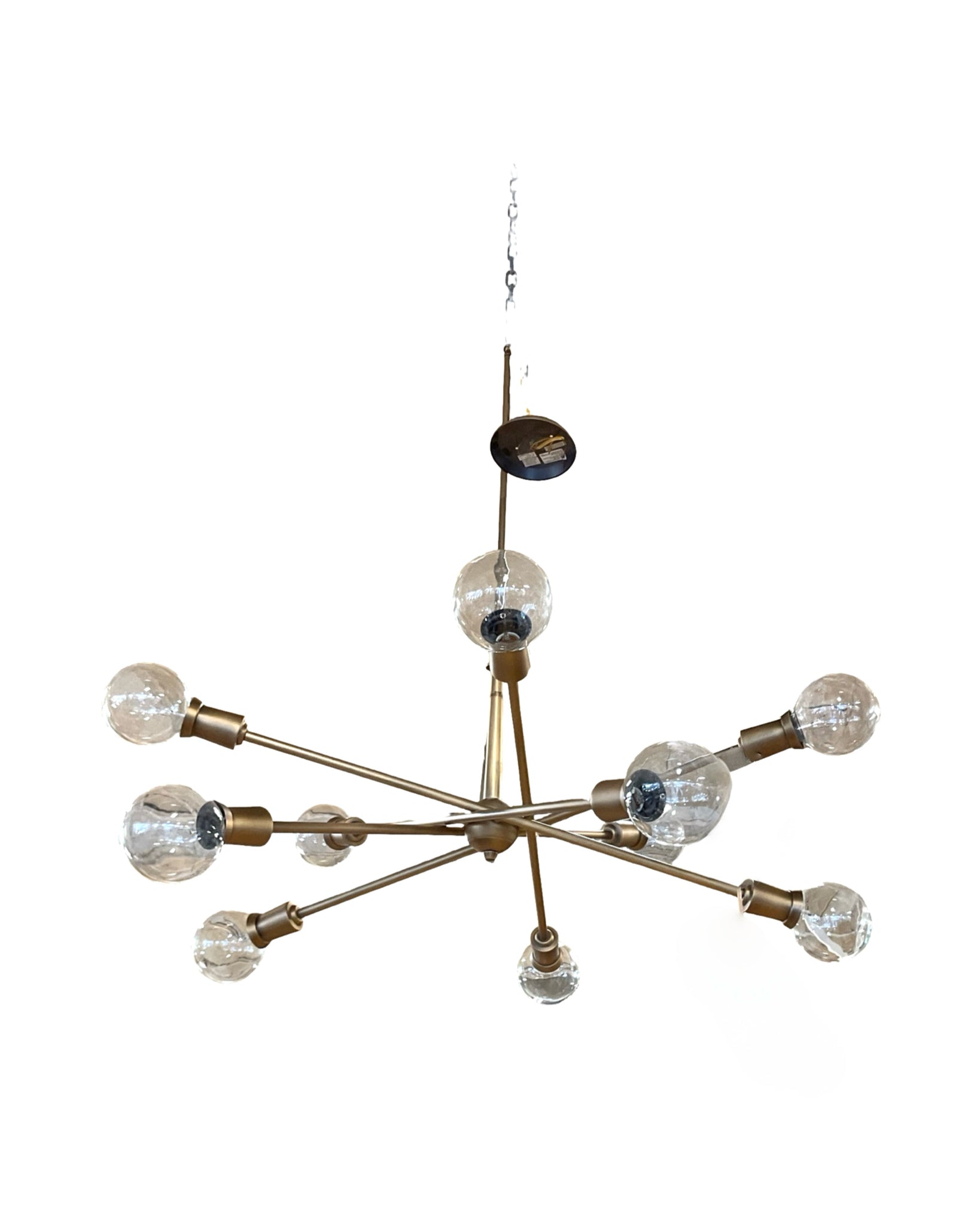 Light Fixture Brass 10 Arm with Glass Globes