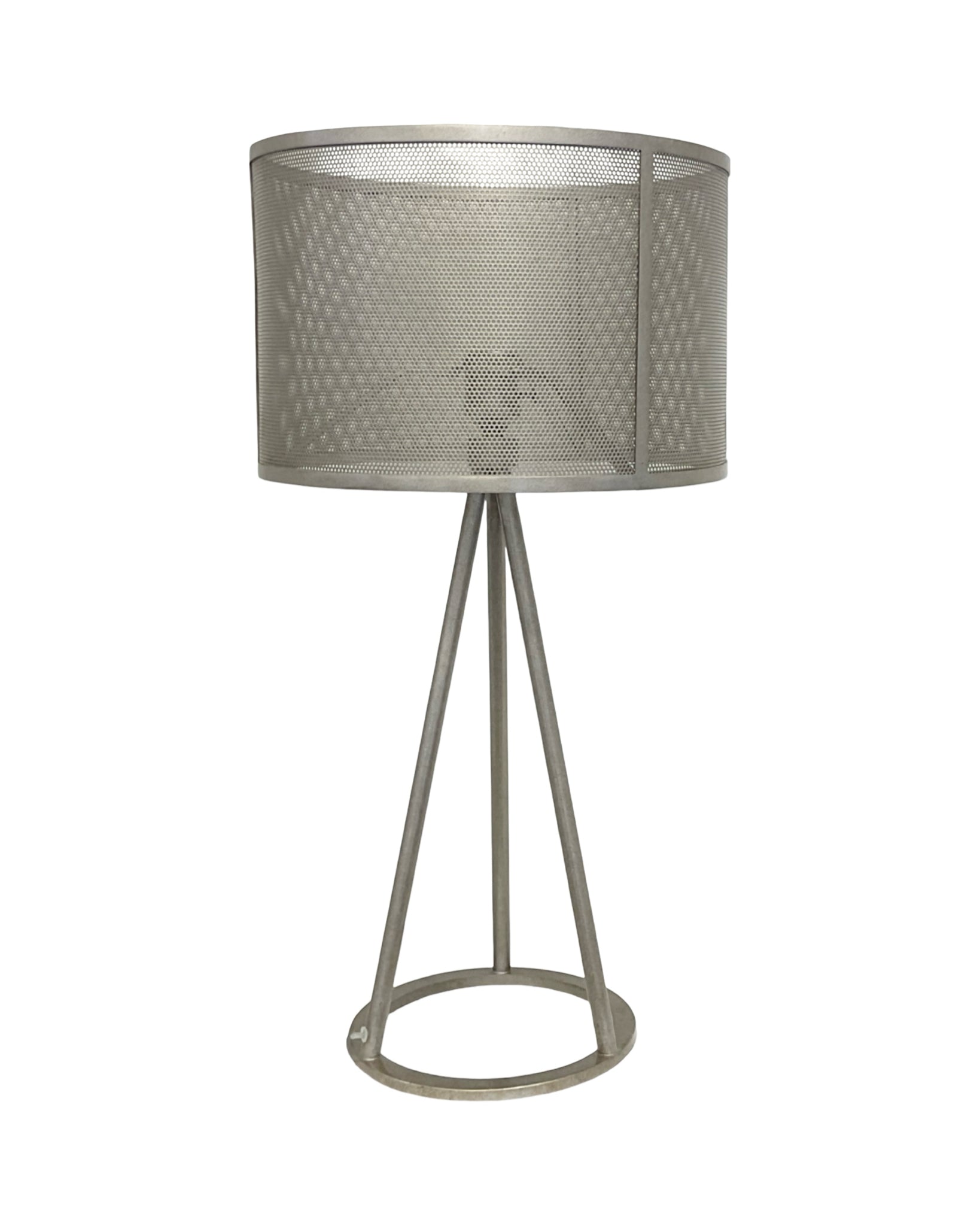 Table Lamp metal silver leaf base with round cage shade