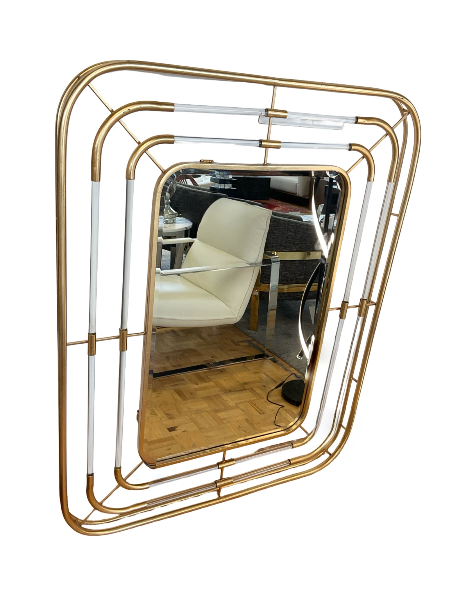 Mirror Uttermost rectangle metal with acrylic tube detailing antique gold tone frame 42"W x 54"H