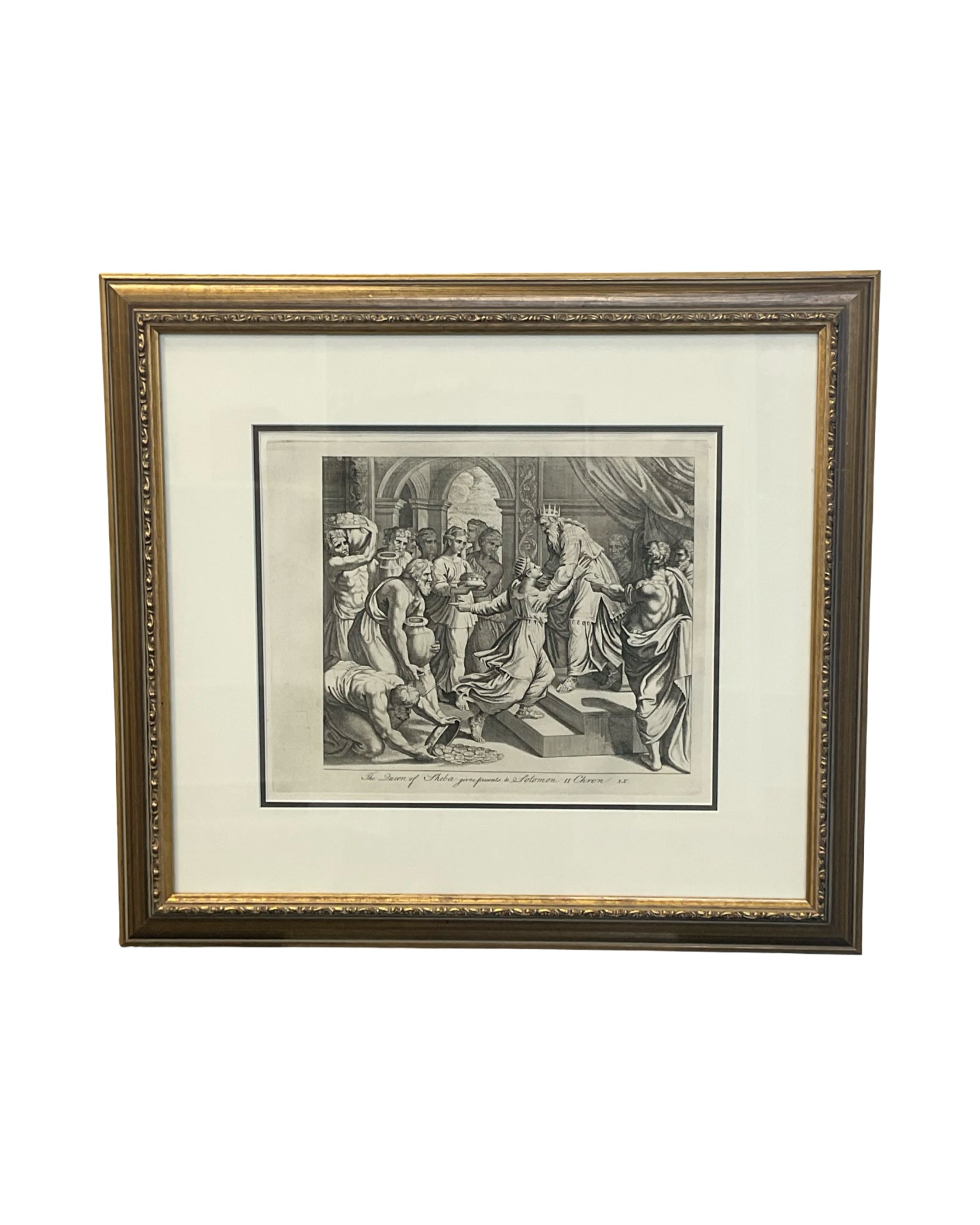 Artwork etching The Queen of Sheba in gold tone frame 22"W x 20"H