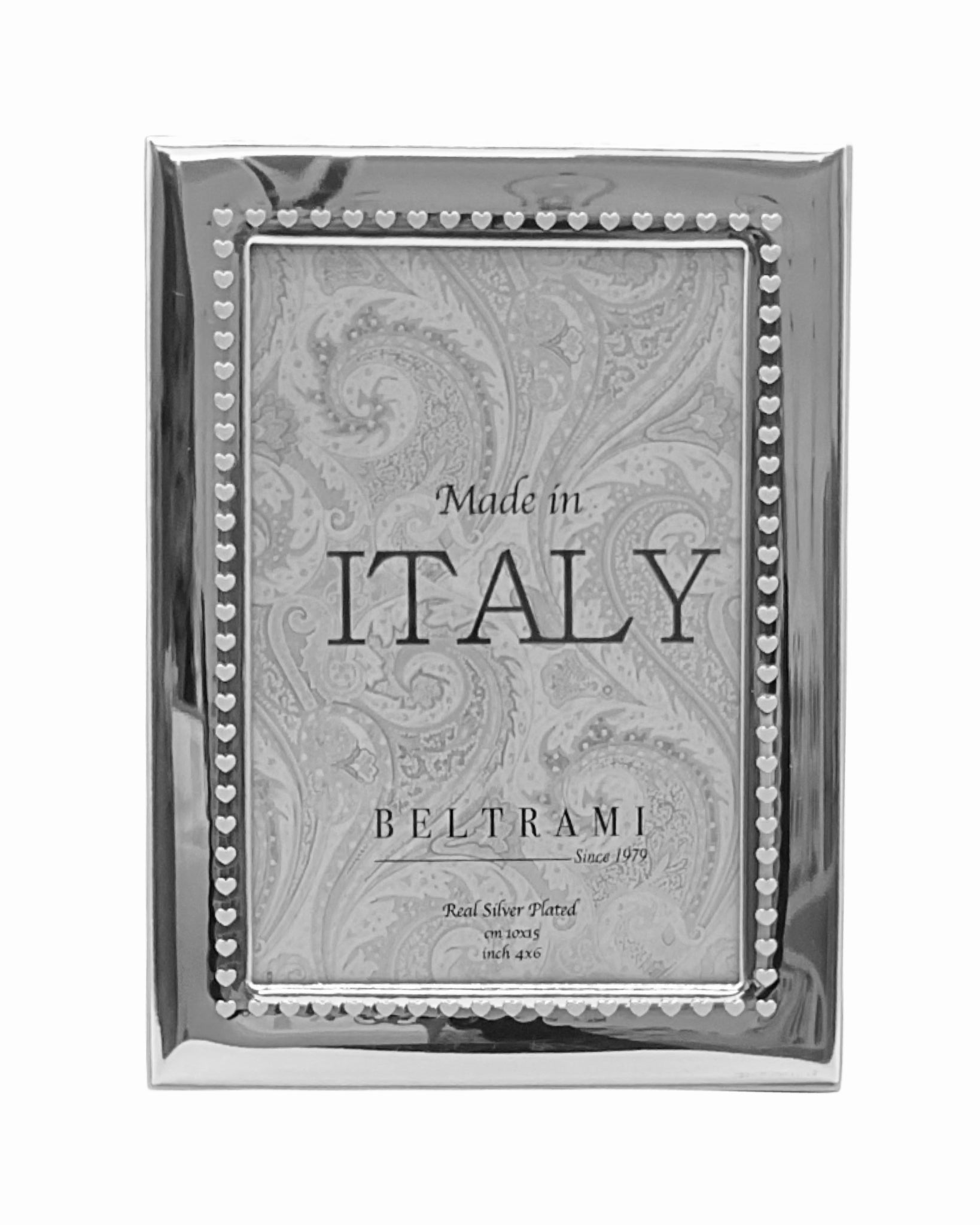 Photo Frame Beltrami silver plated with heart detailed boarder 4 x 6