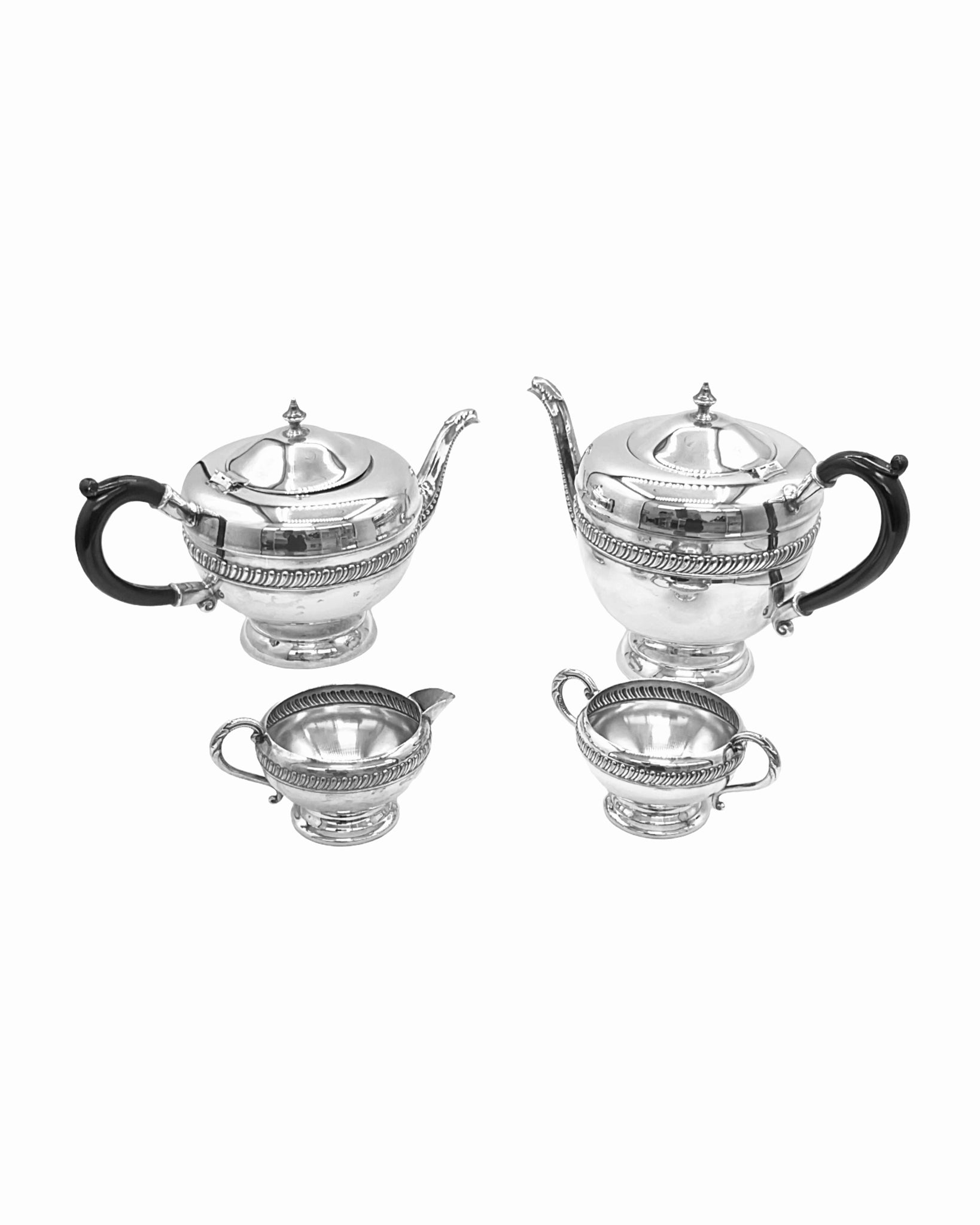 4 Piece Set 1 Coffee 1 Tea 1 cream 1 sugar Empress silver plate with black handle
