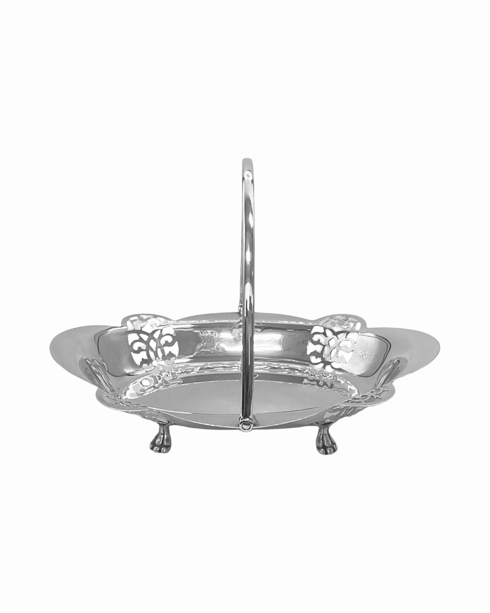 Footed Fruit Egg Basket with Handle S. J. L & Co silver plate with filigree detailing on the corners