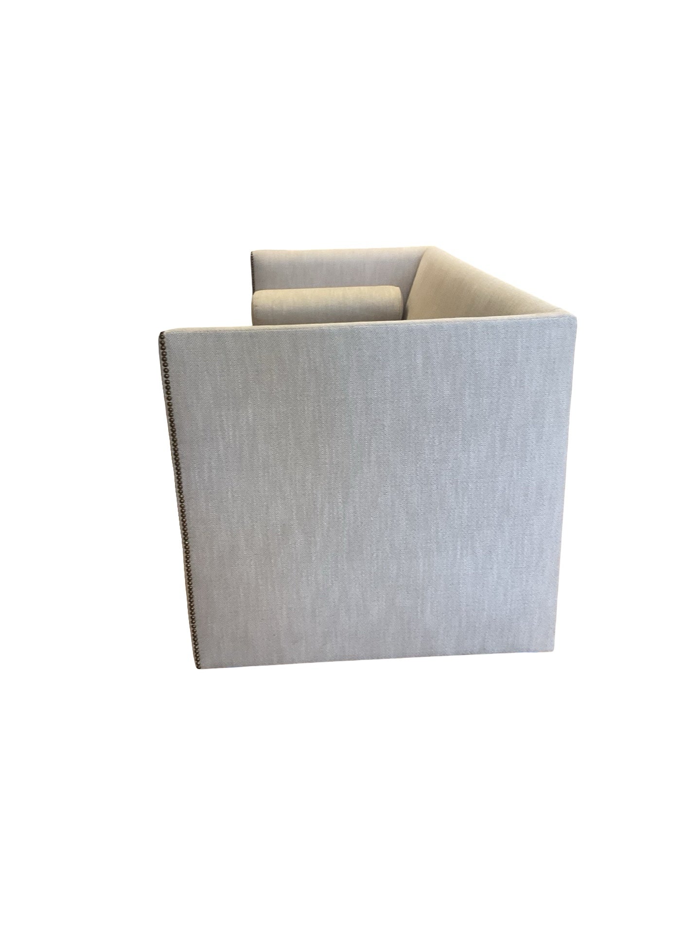 Sofa taupe upholstery with stud detailing & 2 matching bolster pillows 83"W x 34"D x 33"H