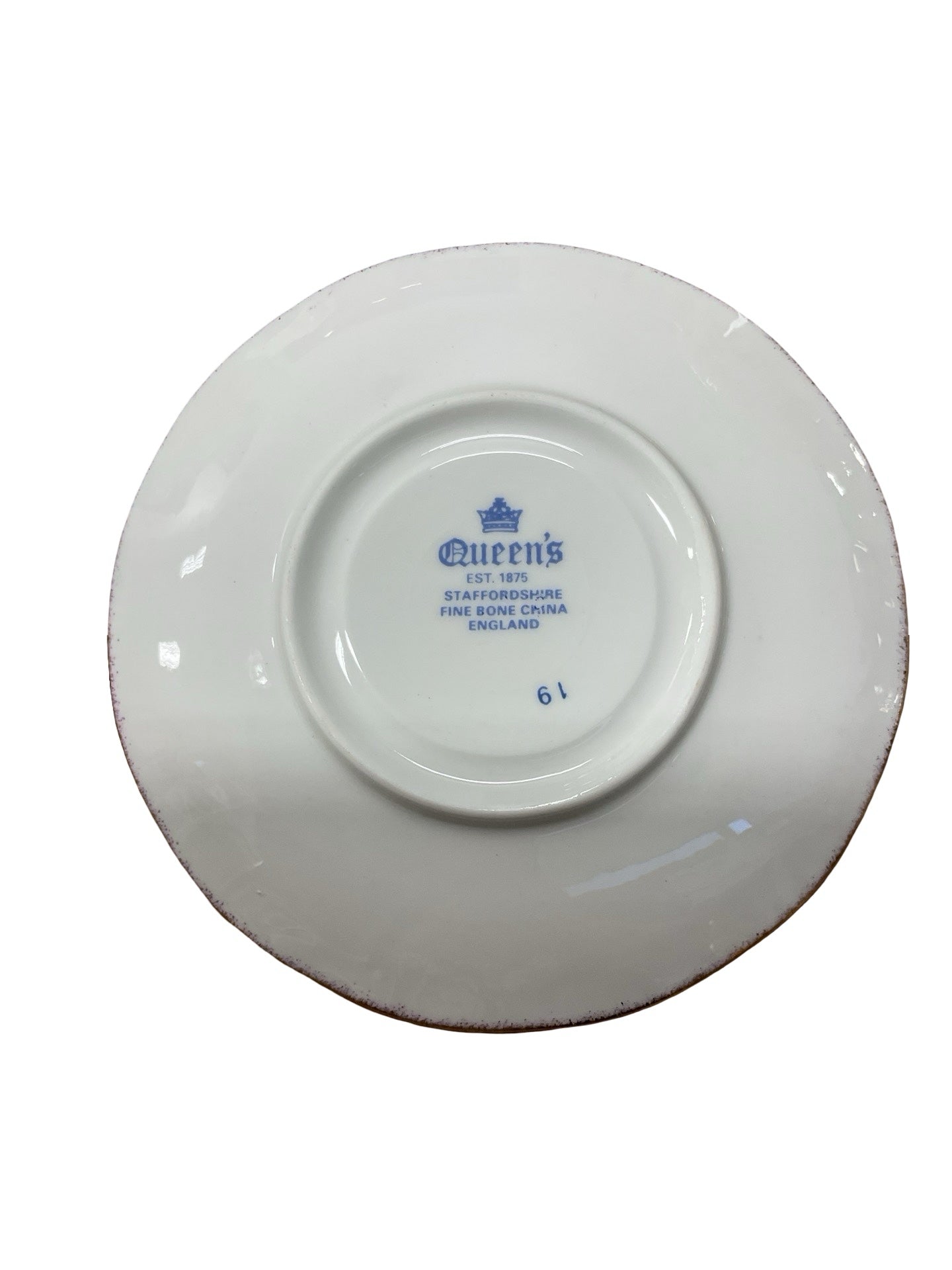 Demitasse Tea Cup & Saucer Staffordshire Queen's white & floral with gold detailing