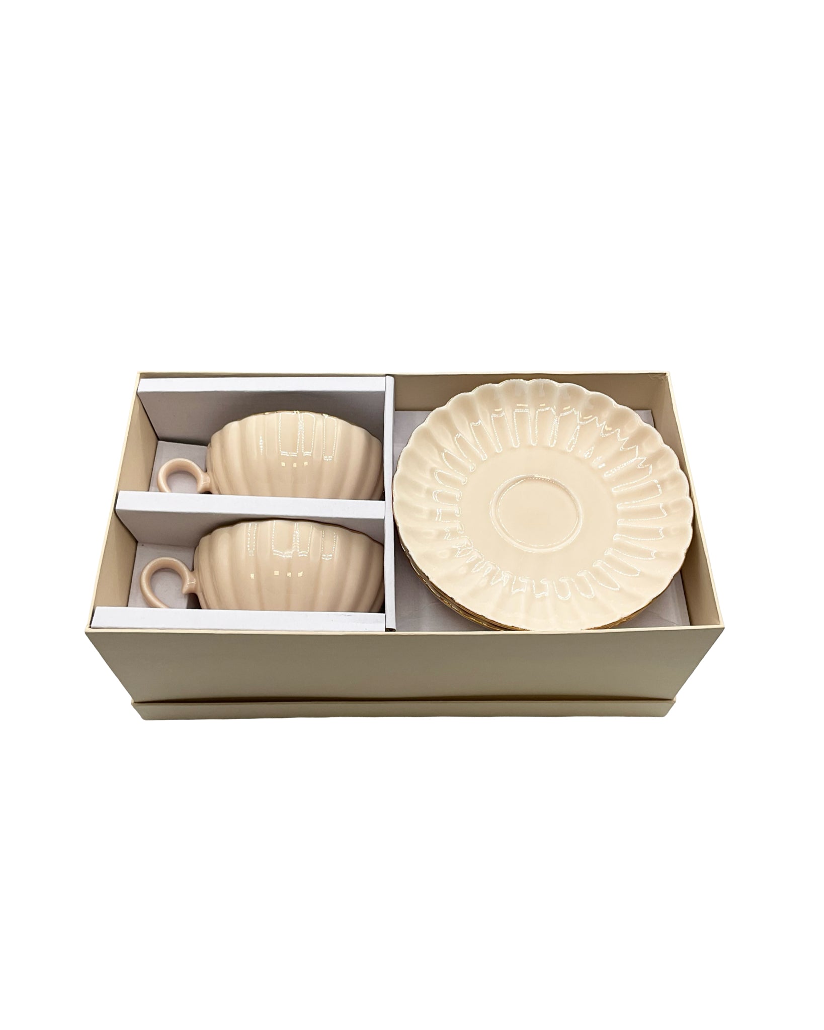 Set of 2 Cappuccino Cups and Saucers LH cream with gold detailing