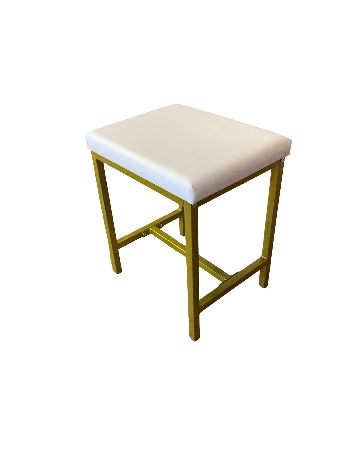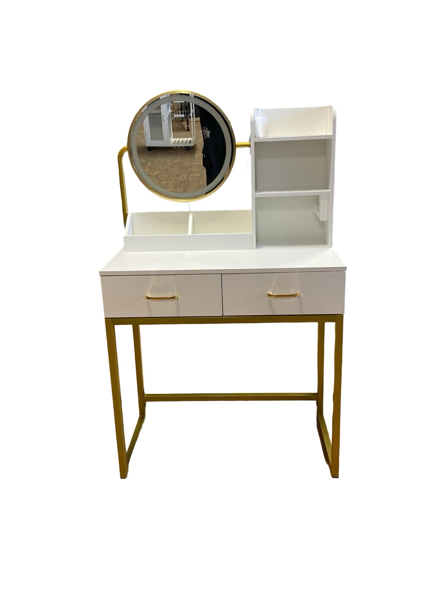 Vanity and Bench 2 drawers 2 open shelves white with gold tone detailing 32"W x 16"D x 53"H